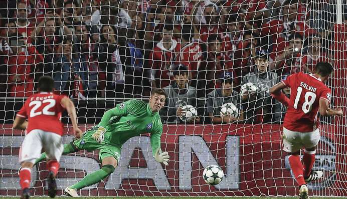 45+2 Гооол! Открыла счет "Бенфика" - Сальвио пробил точно! Вновь Рудько показал, что до Шовковского ему очень и очень далеко - не умеет он отражать пока 11-метровые