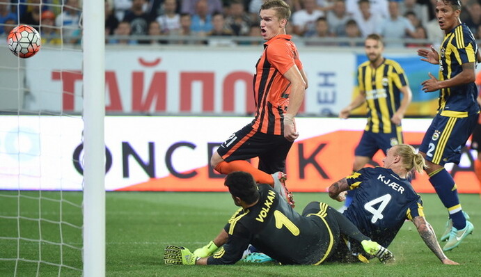 Дончане ответили также опасной фланговой атакой, которую прострелом слева завершил Вячеслав Шевчук. Турецкие защитники неудачно выбили мяч, Александр Гладкий его подобрал и выкатил на Алекса Тейшейру, который пробил прямо в руки голкиперу "Фенербахче" Волкану Демирелю.