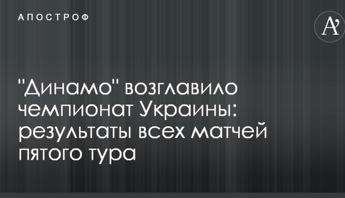 У чемпіонаті України завершилися матчі п'ятого туру. У центральному поєдинку туру "Динамо" перемогло "Олександрію" з рахунком 1:0 і вийшла на перше місце в турнірній таблиці.