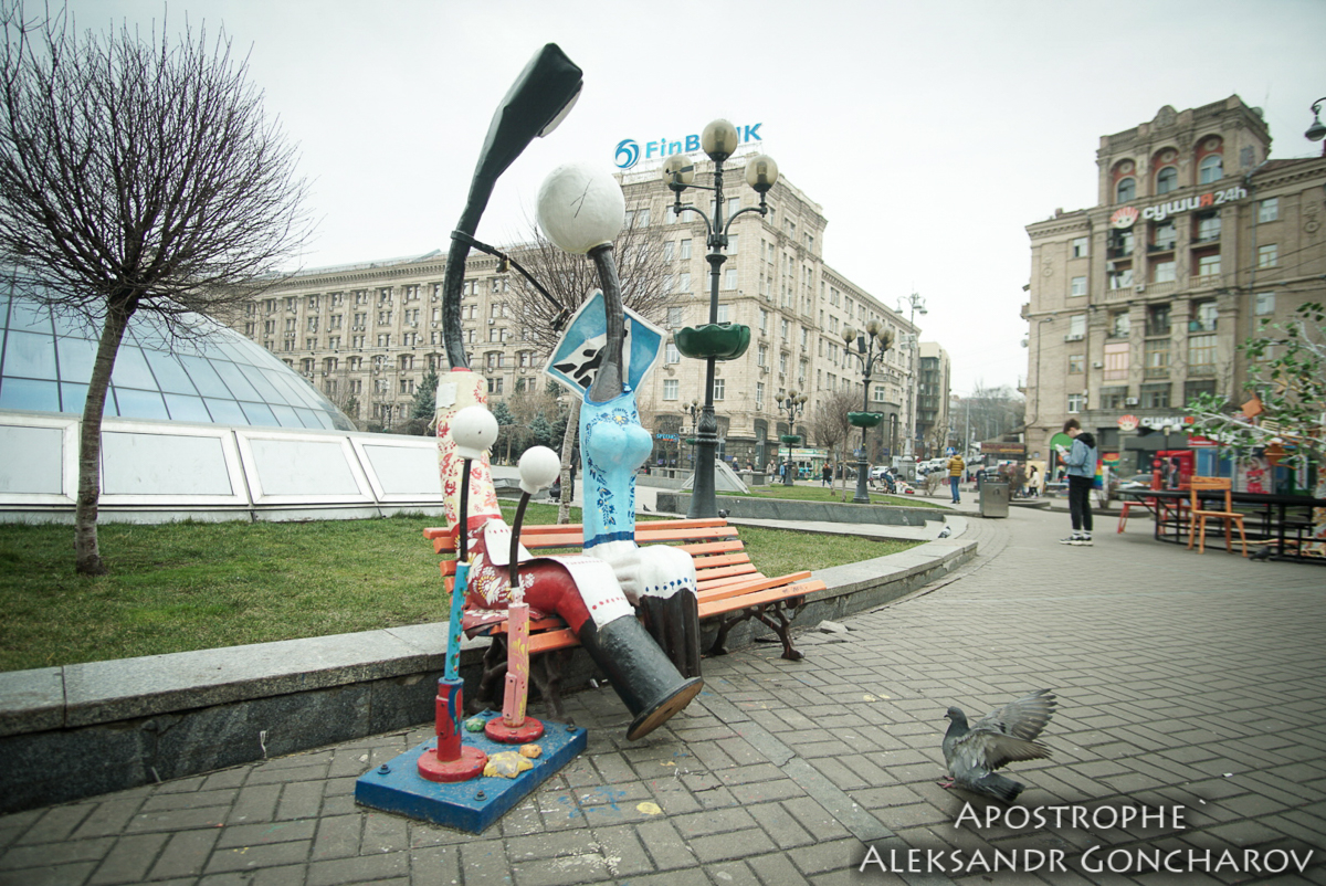 Арт-об'єкти на лавочці на Майдані Незалежності.