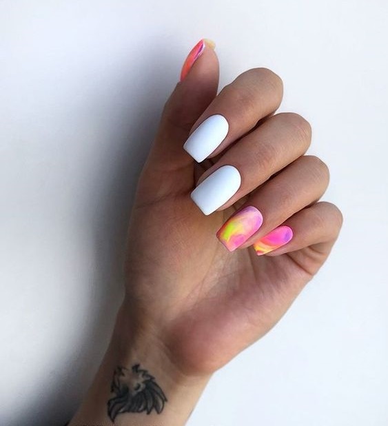 Ще один варіант манікюру - в яскравих кислотних відтінках. Ви можете обрати один з них або поєднувати кілька навіть на одному нігті.