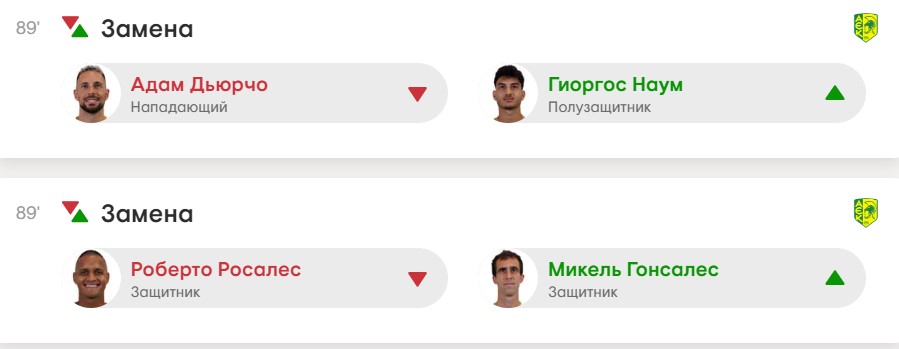 66 хв. у відповідь і тренер АЕКа робить заміну: Рафаил Мамас вийшов замість Рафаела Лопеша