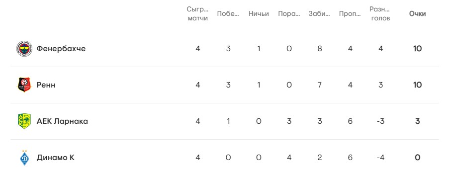 АЕК вийшов у плей-офф Ліги конференцій, а для "Динамо" євросезон буде завершено 3 листопада.