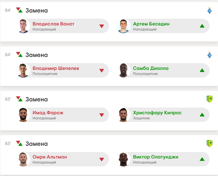 Запасні: 74.Ігнатенко, 75.Авраменко, 4.Попов, 6.Бурда, 9.Перріс, 19.Гармаш, 20.Караваєв, 21.Кравченко, 30.Діалло, 41.Бєсєдін, 94.Кендзьора