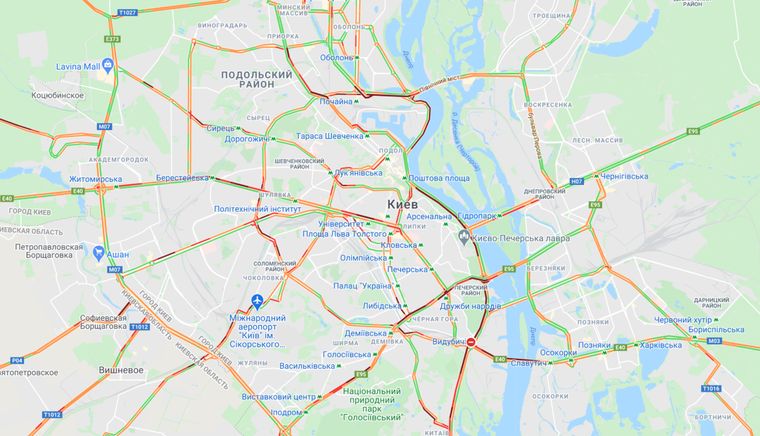 Крижаний дощ накрив області близько до вечора, як раз, коли люди вибиралися з роботи по домівках. І хоча рятувальники наполегливо рекомендували скористатися громадським транспортом, а не власними авто, судячи з даних Google Maps порад послухались не всі водії. У Києві через ожеледицю та велику кількість аварій практично зупинився рух не тільки в центрі, але і по всьому місту.