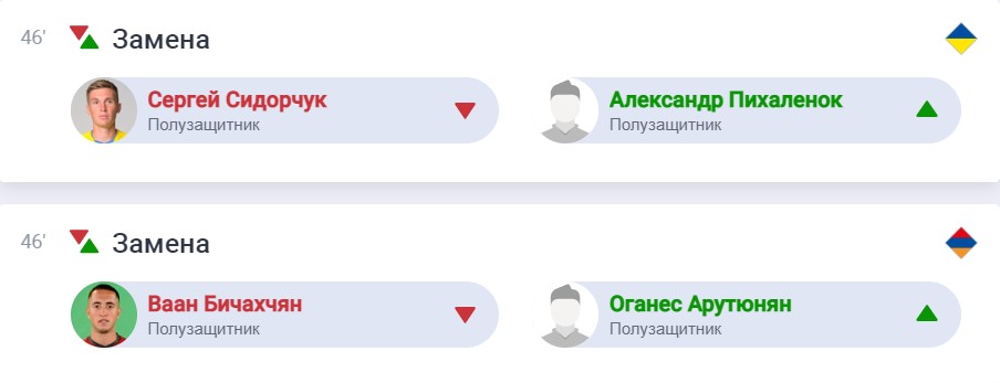 46 хв. Олександр Петраков і Хоакін Капаррос зробили по одній заміні в перерві: у нас замість Сидорчука вийшов Піхальонок. А у вірмен з'явився Арутюнян
