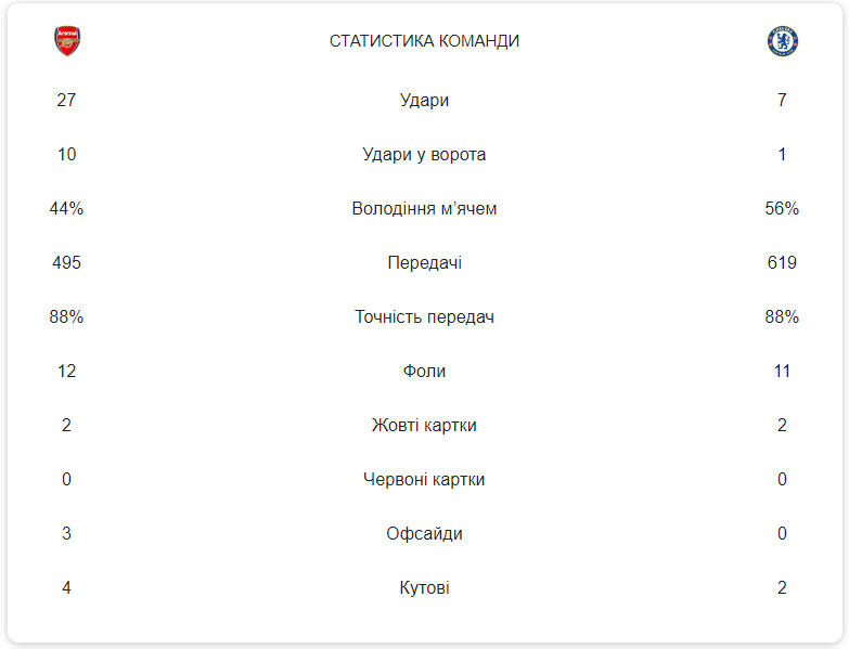 Зазначимо, що це найбільша перемога "Арсеналу" над "Челсі". З таким рахунком "каноніри" у "синіх" ще не вигравали. А ось у "Челсі" найбільша перемога 6:0. Це було в золоті часи команди Жозе Моурінью.