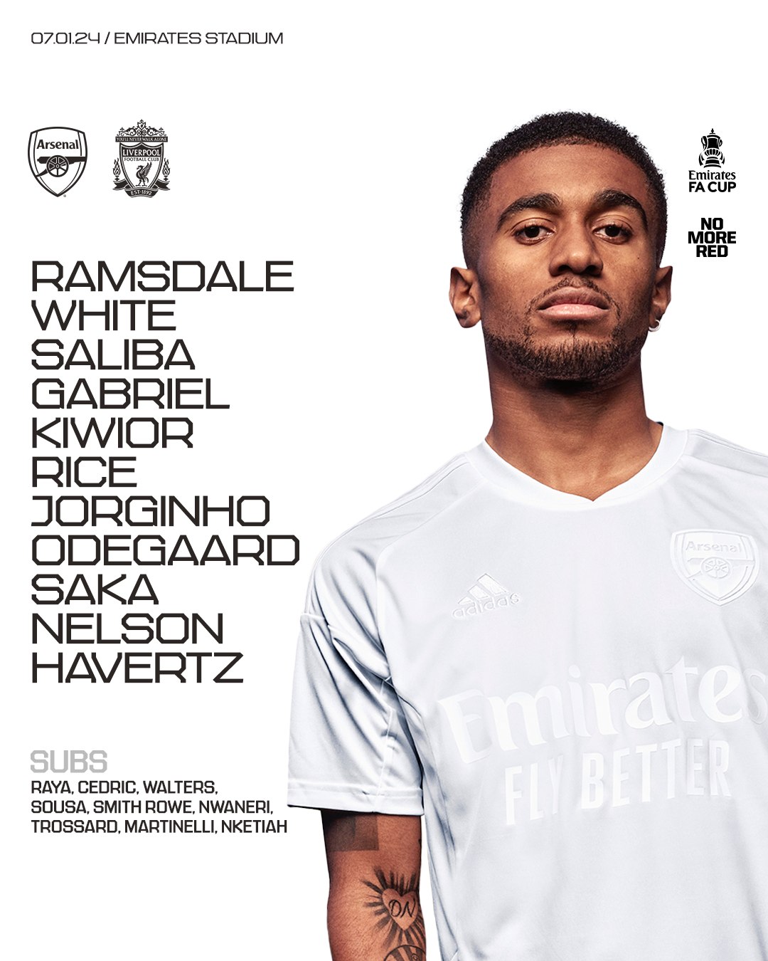 Арсенал: 1. Аарон Ремсдейл – 15. Якуб Ківьор, 6. Габріел, 2. Вільям Саліба, 4. Бен Вайт – 41. Деклан Райс, 20. Жоржиньйо, 8. Мартін Едегор – 24. Рейсс Нельсон, 29. 7. Букайо Сака