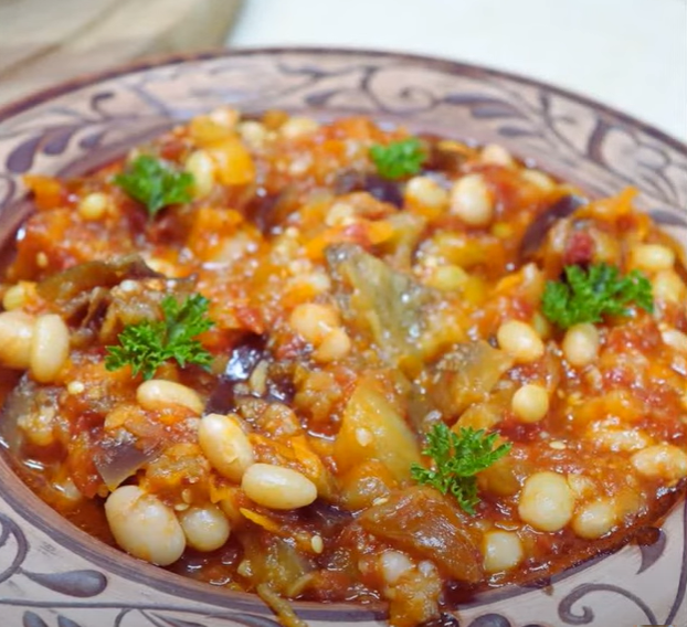 Цей рецепт поєднує овочі, бобові та спеції, завдяки чому виходить ситна осіння страва з вираженим смаком. Баклажани з квасолею можна назвати повноцінною стравою, яку можна подавати до картопляного пюре чи каші або ж просто смакувати як самостійною закускою.