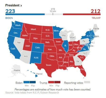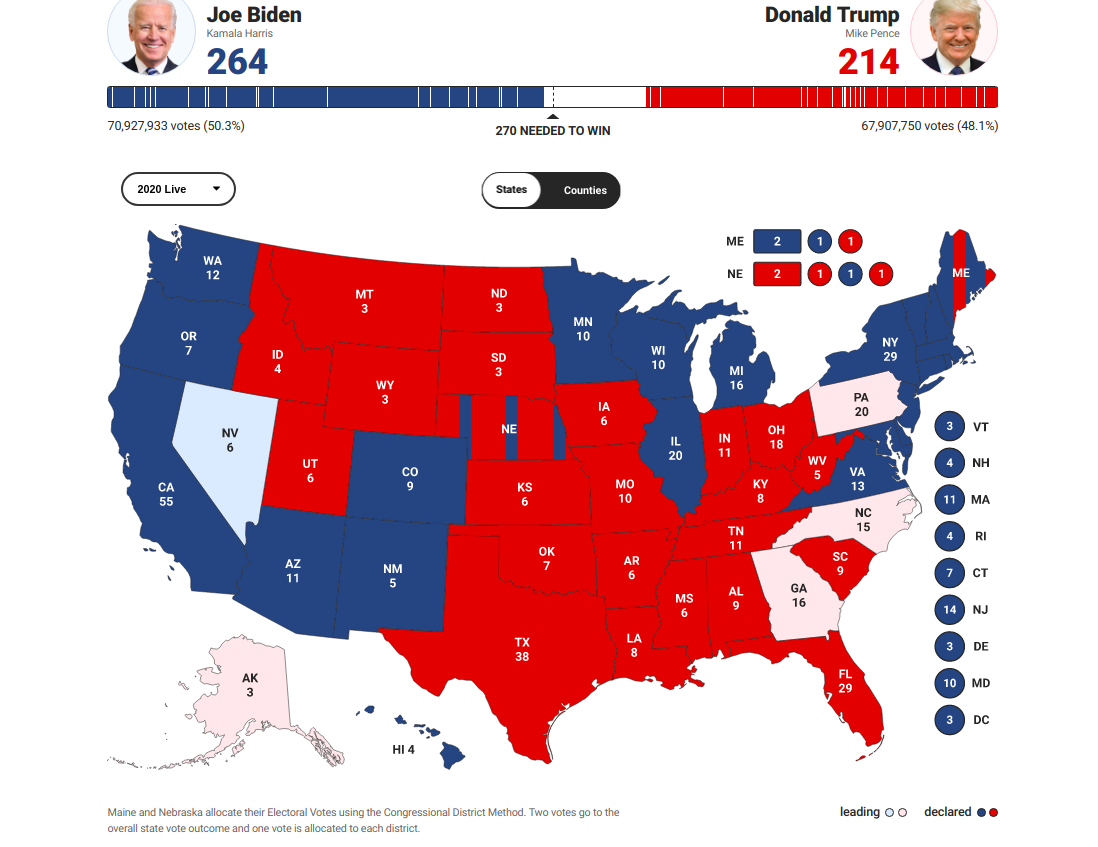 Якщо Байден збереже своє лідерство в Неваді і Арізоні, він отримає 270 голосів виборників, необхідних для обрання на пост президента.