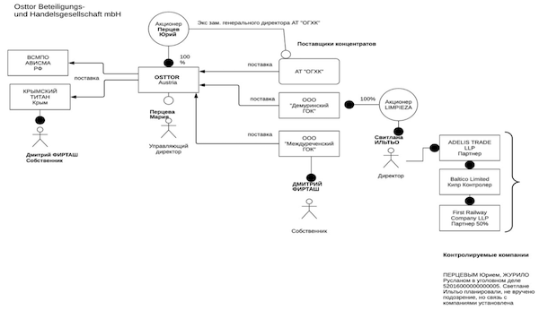 Має прямі та опосередковані багаторічні зв'язки з громадянами України та РФ, які, у свою чергу, мають безпосереднє відношення до титанового бізнесу та постачання титанової сировини на підприємства ОПК Росії;