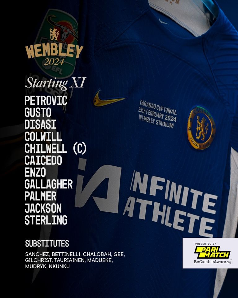Челсі: 28. Джордже Петрович - 21. Бен Чілвелл, 26. Леві Колвілл, 2. Аксель Дісасі, 27. Мало Гюсто - 8. Енцо Фернандес, 25. Мойзес Кайседо - 7. Рахім Стерлінг, 23. Коннор Галлахер, 20. Коул Палмер - 15. Ніколя Джексон