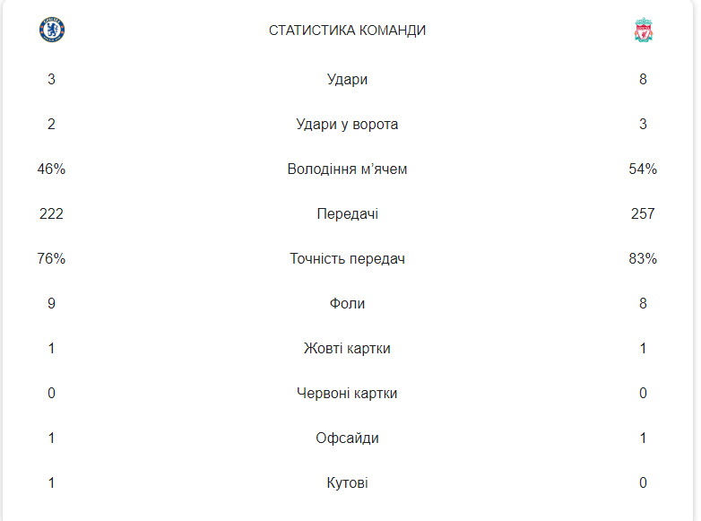 ЧЕЛСІ - ЛІВЕРПУЛЬ - 0:1
