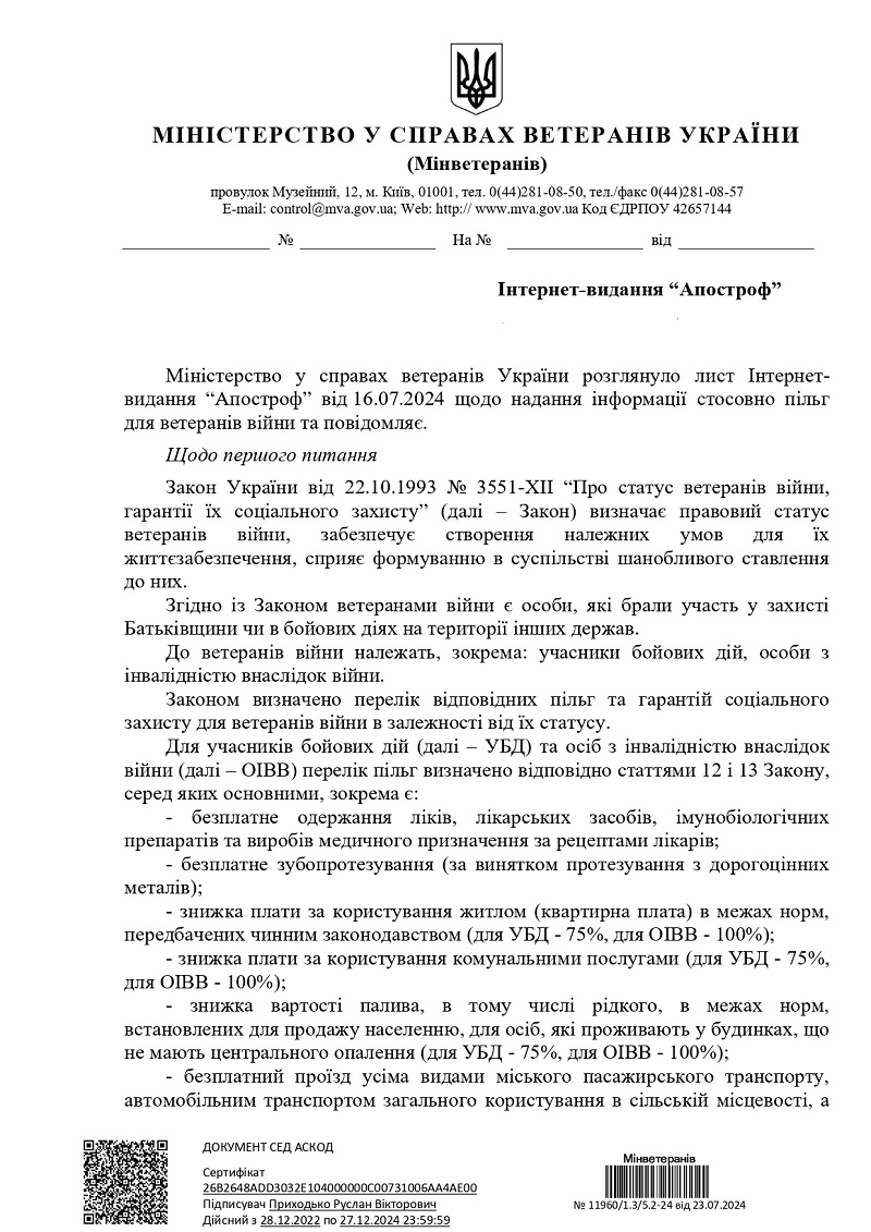На це запитання у Мінветеранів відповіли не дуже чітко.
