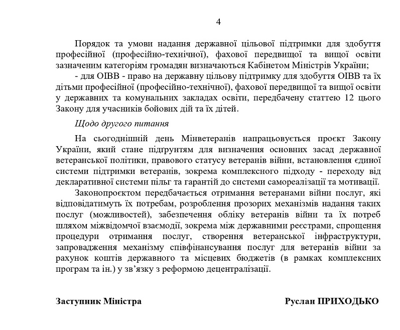 "Апостроф" також поцікавився, чи збирається влада розширювати перелік пільг для українських військових, в першу чергу для тих, хто брав участь у бойових діях.