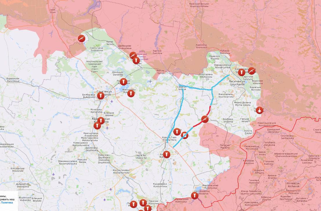 Втім, основним напрямком для ворога залишається Сіверськ, адже це дає можливість вийти до Верхньокам'янки і замкнути коло оточення наших військ у Сєвєродонецьку та Лисичанську. Але їм треба форсувати Донець, захопити широкий плацдарм, утримати його – попередня спроба зробити це в Білогорівці, як відомо, повністю провалилась.