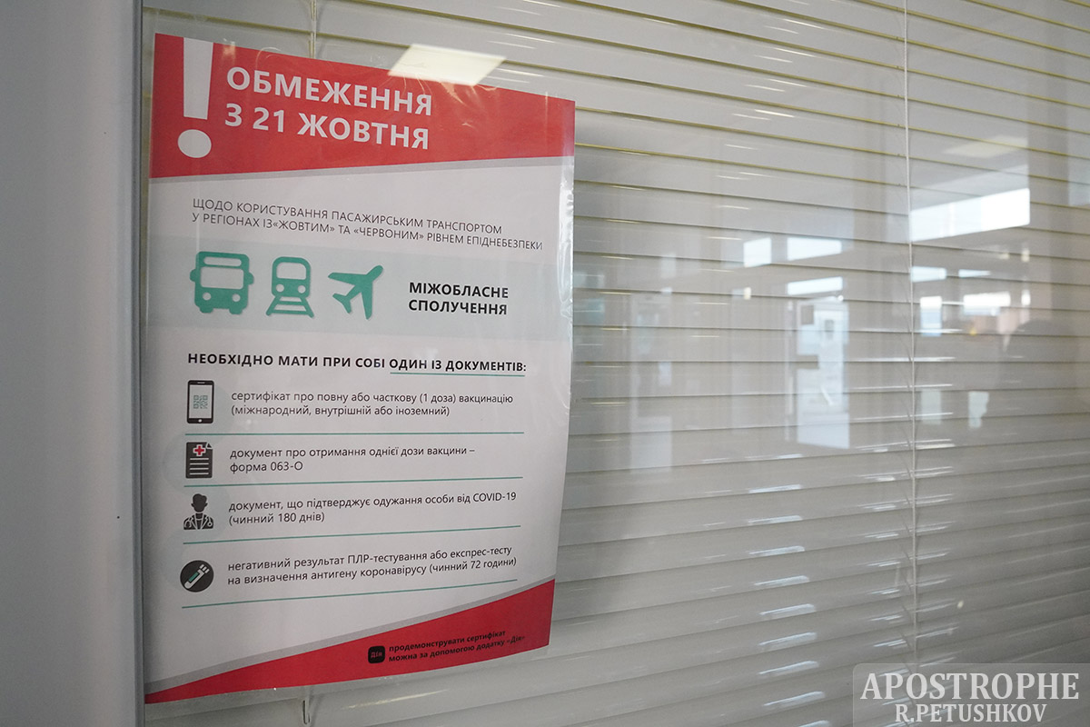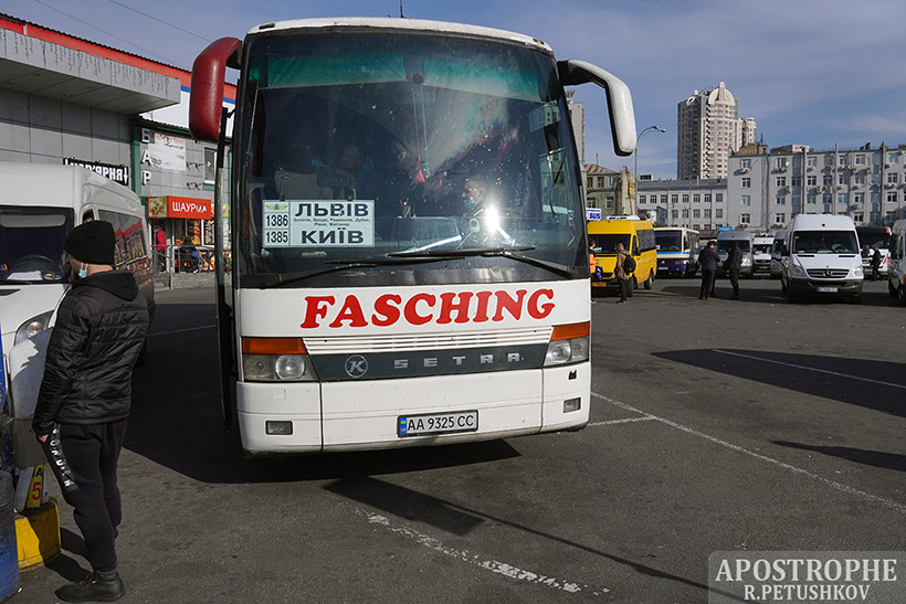 Трохи нижче залізничного вокзалу розташована автостанція "Київ". Звідси регулярно курсують автобуси в усі куточки України. Водії нервово курять біля своїх автобусів і обговорюють між собою нові, "незручні" правила. Журналістам перевізники розповідають, що потрапити в салон без сертифіката або тесту - ніяк: "Не повеземо".