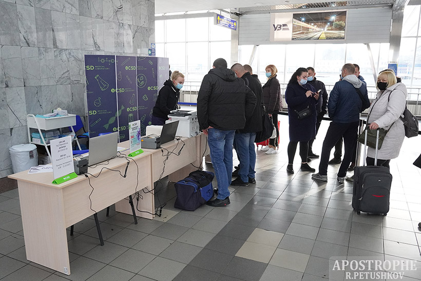 Правда, необхідно ще дочекатися своєї черги на тестування. А це ще хвилин 20-30. На момент рейду "Апострофа", біля кожного з пунктів тестування накопичилося по 20-30 пасажирів. Так що, не маючи документів про вакцинацію або раніше зроблених тестів, необхідно прибувати на залізничний вокзал мінімум за годину до відправлення поїзда.