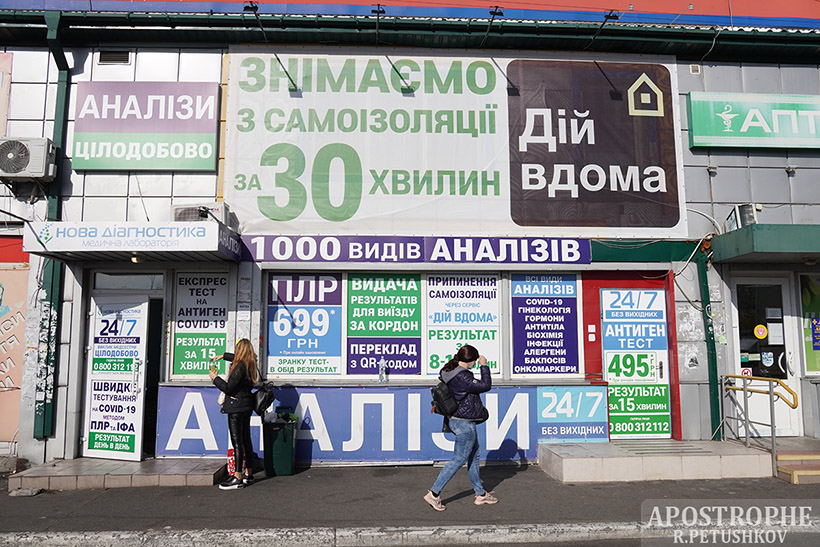 "Якщо за попереднім онлайн-записом, то тест 495 гривень, а якщо тут і зараз 550 гривень", - озвучують свою таксу лаборанти.