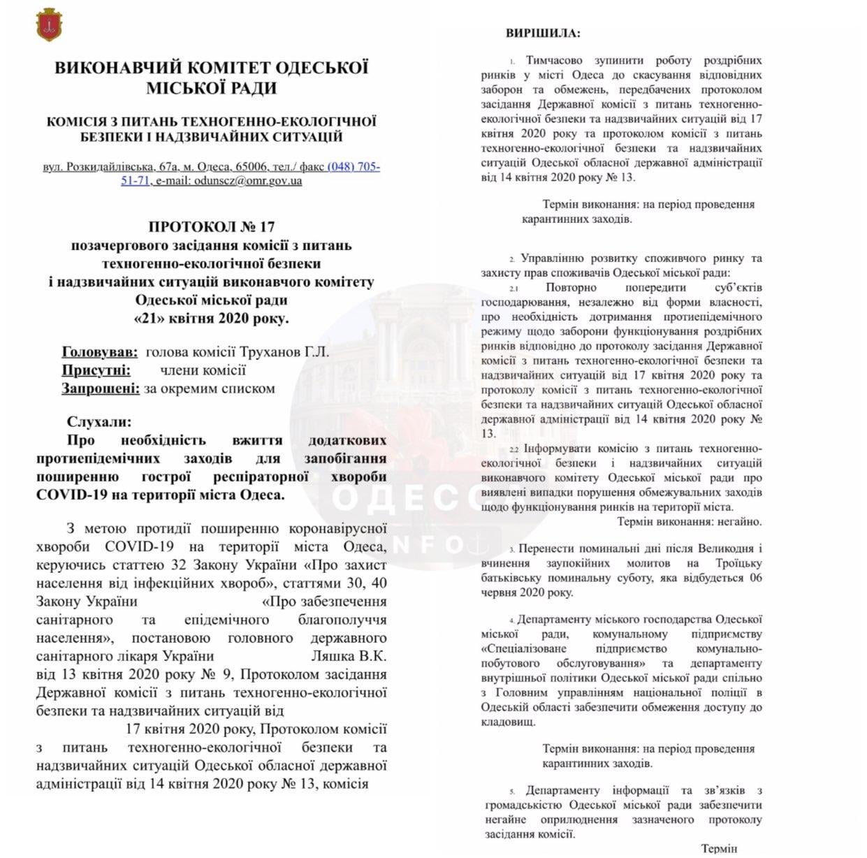 21:23 В Одесі все-таки закривають ринки і кладовища. У рішенні влади йдеться про призупинення роботи роздрібних ринків на території міста до закінчення карантину. Крім цього, в мерії розпорядилися закрити всі міські кладовища. Поминальні дні переносяться на 6 червня.