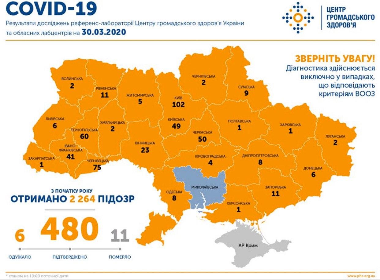 10:03 В Україні зафіксовано 480 випадків коронавірусної хвороби COVID-19!!!