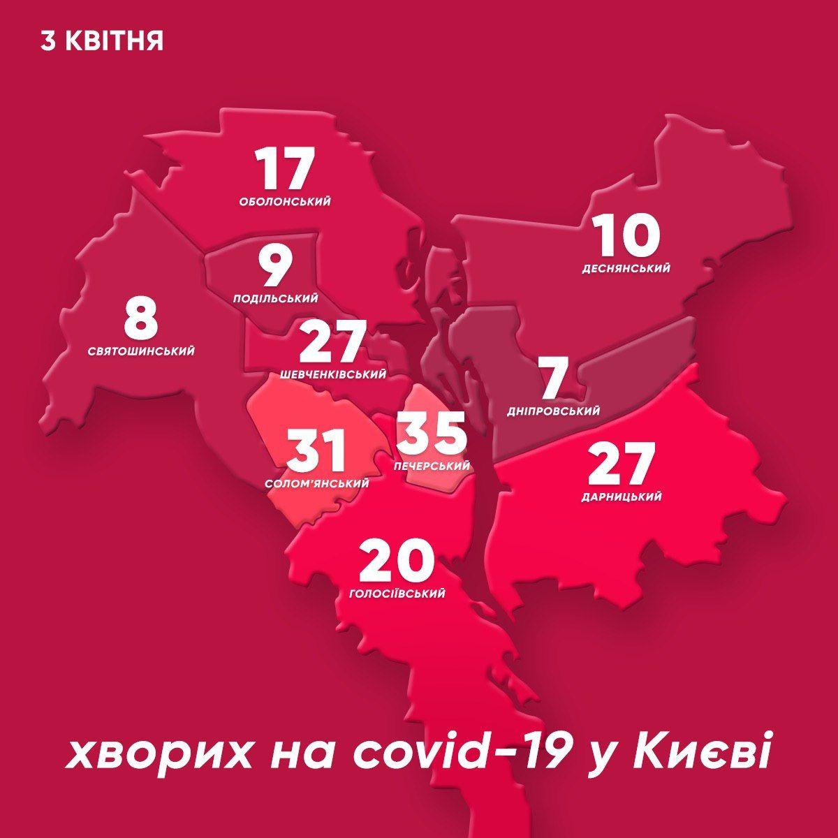 12:34 Як змінилася карта захворювання в Києві. Підтверджені випадки додалися в наступних районах: