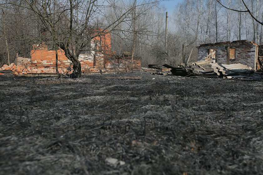 Згорілі в результаті лісової пожежі будинки в селі Рагівка Київської області