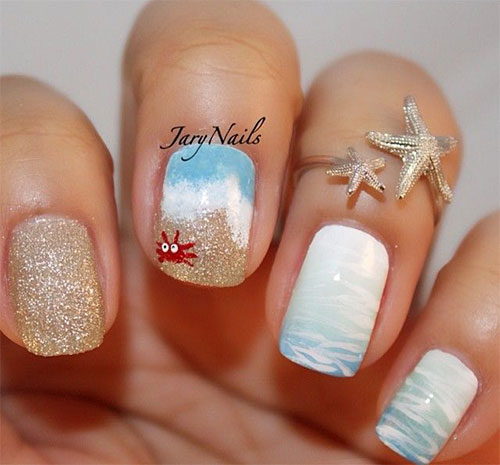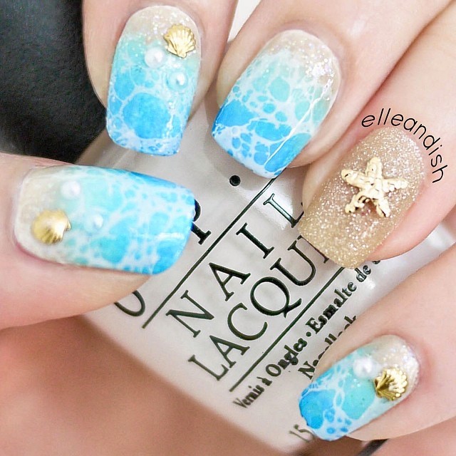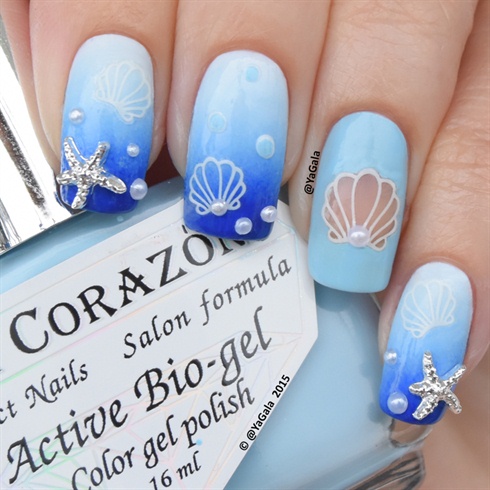 Для справжніх русалоньок хорошим варіантом манікюру може стати дизайн з візерунками і прикрасами у вигляді черепашок і різних морських мешканців.