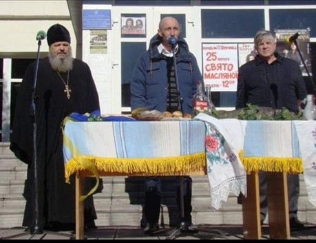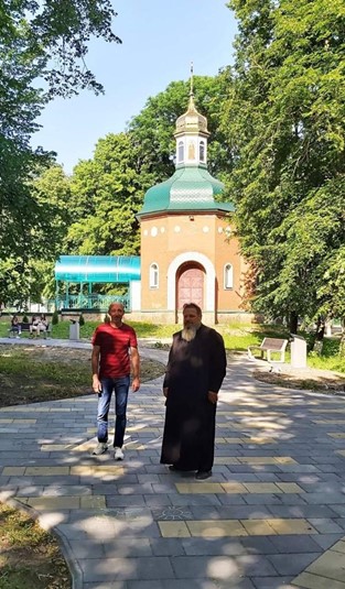 Селищний голова Бородянки Олександр Сахарук регулярно з"являється на публіці у компанії з підозрюваним у колабораціонізмі священником "УПЦ МП" Віктором Тальком. Дружбу з ним не приховує. Фото: Інтернет, Facebook