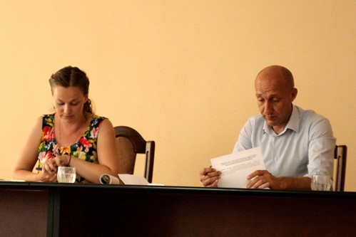 Колишня голова Бородянської РДА Аліна Бурдак і селищний голова Бородянки Олександр Сахарук. Фото: "Погляд"