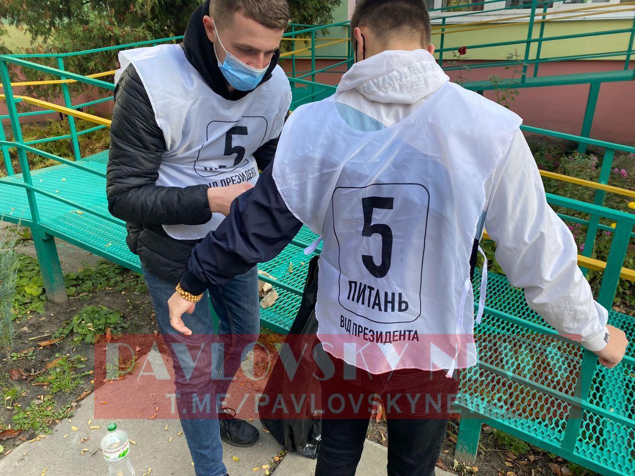 08:27 На виборчих дільницях по всій Україні вже починають з'являтися волонтери, які проводять опитування "5 запитань від президента". У брендованих жилетках і з брендованими коробочками вони опитують людей.