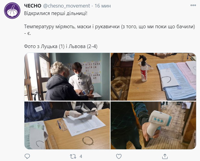 10:00 Протягом перших двох годин спостерігачі повідомили про низку порушень на виборчих дільницях - брак ящиків і кабінок для голосування, не вчасно відкриті ділянки і зіпсовані бюлетені. Люди на деяких дільницях не дотримуються дистанції, а члени комісій - без масок.