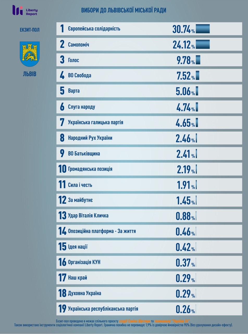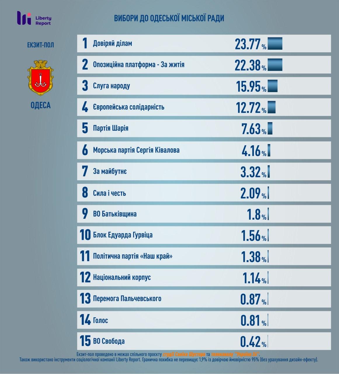 До міської ради Кривого Рогу, згідно з даними екзит-пол, проходять такі партії: