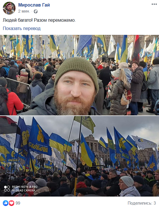 13:55 За словами волонтера Мирослава Гая, людей на акції зібралося досить багато. Учасники мітингу діляться фото в соціальних мережах.