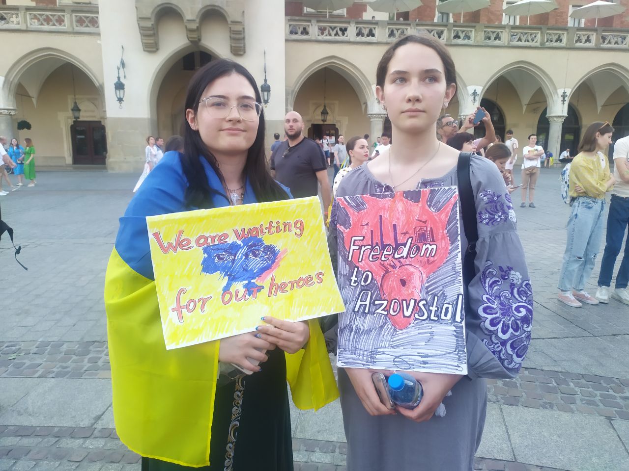 Марія і Єва - студентки, які в Кракові живуть і навчаються майже рік. Вони добре обізнані про ситуацію в Україні і зокрема трагедію "Азовсталі". Говорять - болить за свою країну та земляків, тому й тут.