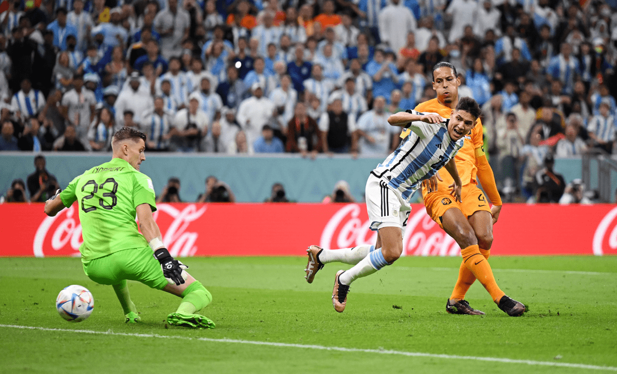 114 хв. Енцо Фернандес справа виклав м'яч під удар Лаутаро, Той пробив у дотик - влучив у груди ван Дейка, від якого м'яч полетів за межі поля