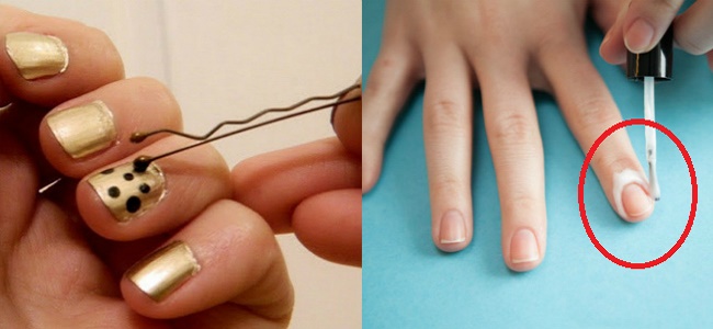 Цікава ідея - манікюр в горошок. Зробити його можна за допомогою звичайної шпильки для волосся. Також, щоб вам було простіше не виходити за краї нігтя, можна змастити шкіру навколо пластини звичайним клеєм ПВА. Після того, як манікюр буде готовий, досить зняти тонку плівку, на якій залишаться зайві лінії.