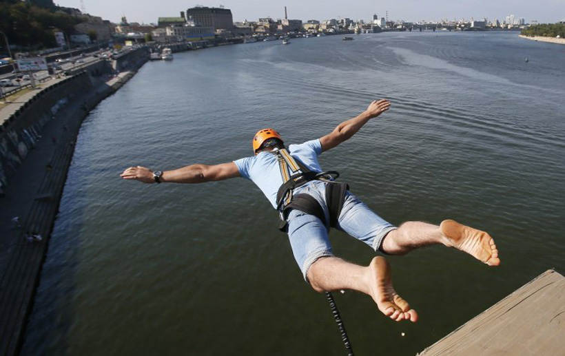 Хто ходив по пішохідному мосту на Труханів острів, напевно бачив обмотаних мотузками людей у шоломах, які час від часу сягають із мосту вниз. Це роуп-джампінг – доволі популярна екстрим-розвага, що дозволяє відчути всі принади вільного падіння.