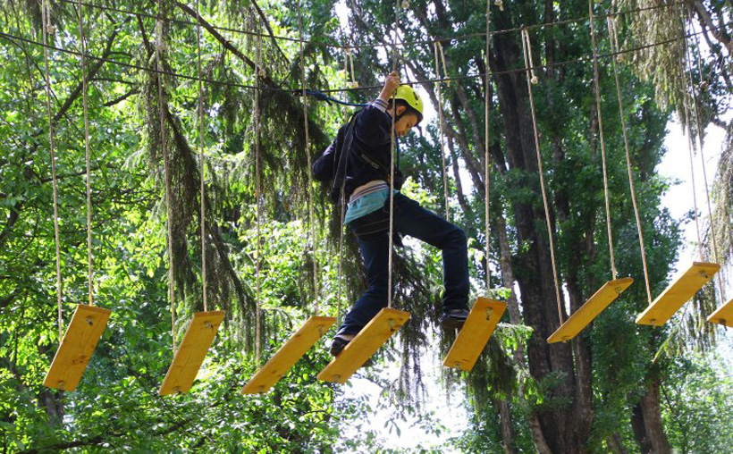 Якщо до скелелазіння поки не доросли – саме час опановувати навички у мотузковому парку. Це звичайне лазіння по тросах і деревах за допомогою спеціального спорядження, чудово розвиває фізичні якості, просторове мислення й вольові якості.