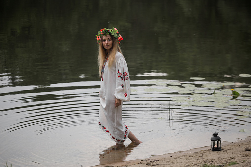 Дівчина в традиційному білоруському одязі з вінком