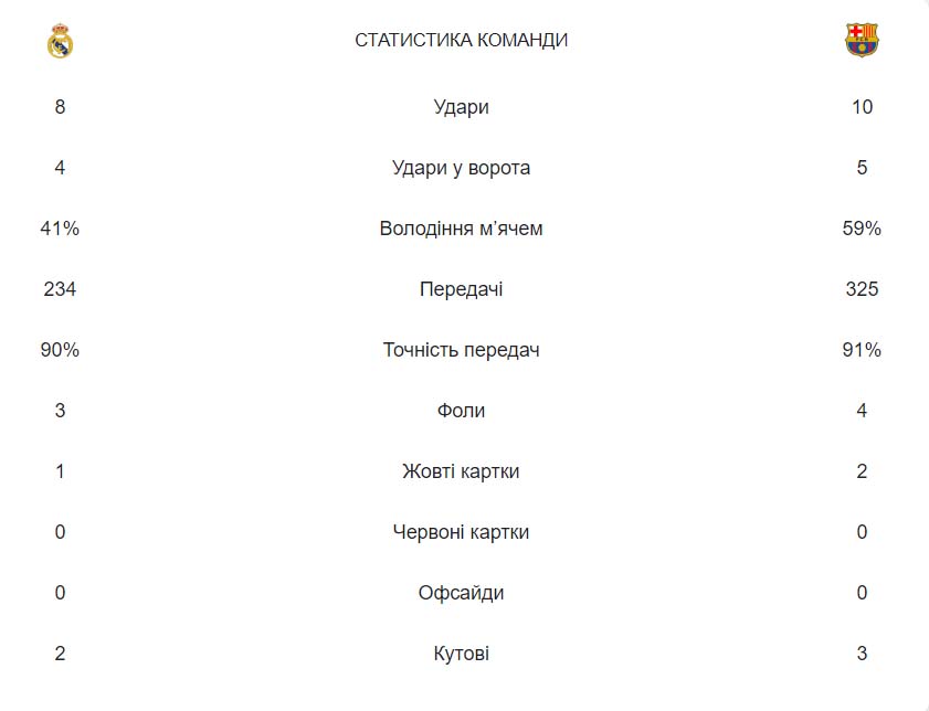 Нагадаємо, що 28 жовтня відбулося перше Ель-класіко у чемпіонаті Іспанії. "Реал" обіграв каталонців на виїзді завдяки дублю Джуда Беллінгема. У турнірній таблиці Ла Ліги "Реал" ділить перше місце з "Жироною", випереджаючи "Барселону" на сім очок. Каталонці йдуть третіми.