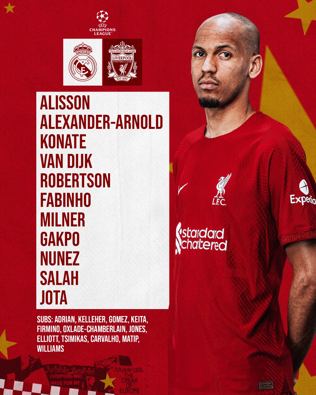 Ліверпуль: 1. Алісон Бекер - 66. Трент Александер-Арнольд, 5. Ібраїма Конате, 4. Вірджил ван Дейк, 26. Ендрю Робертсон - 7. Джеймс Мілнер, 3. Фабіньо - 11. Мохамед Салах, 18. Коді Гакпо, 20. Діогу Жота, 27. Дарвін Нуньєс