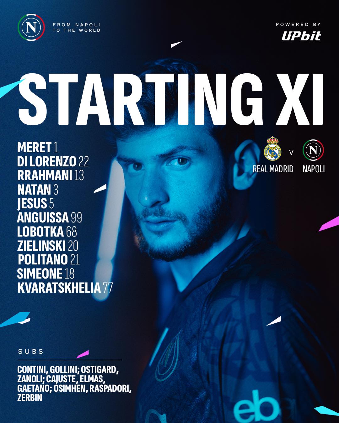 Наполі: 1. Алекс Мерет - 5. Жуан Жезус, 3. Натан, 13. Амір Ррахмані, 22. Джованні Ді Лоренцо (к) - 20. Пьотр Зеліньскі, 68. Станіслав Лоботка, 99. Андре-Франк Замбо-Ангісса - 77. Хвіча Кварацхелія, 18. Джованні Сімеоне, 21. Маттео Політано