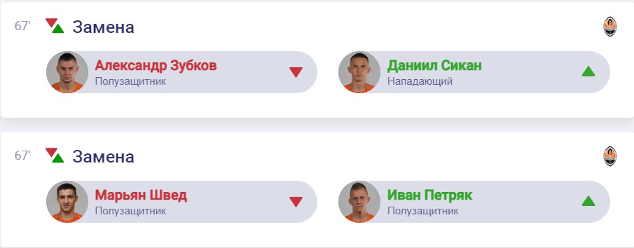 67 хв. дві заміни робить Йовічевич - замість Шведа і Зубкова вийшли Петряк і Сікан