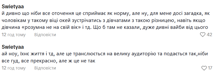 Критичні коментарі українці залишають на сторінці Бібікової в TikTok під відео, яким вона фактично підвередила стосунки з Хайтом після поширення чуток в мережі.