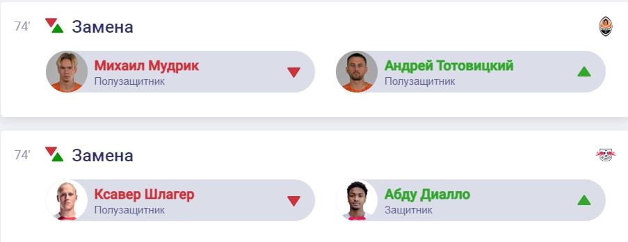 74 хв. ще по одній заміні провели тренери. Йовічевич зняв з поля Мудрика