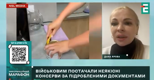 До речі, незрозуміло, чому Ярова каже саме про ветеринарне заключення, адже у м"ясних консервах містяться не лише продукти тваринного походження. Ймовірно, вона не може знати, як саме перевіряються продукти харчування, бо так само, як і журналісти, не є експертом у цій галузі, але охоче коментує якість продуктів.