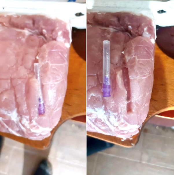 Тему підхоплює ще одна членкиня Антикорради, Тетяна Ніколаєнко, яка заявила, що "накачування мʼяса водою - це найкращий спосіб відбиття маржі в рамках каталогу, спеціально навчені посередники вже купили китайське обладнання, щоб тонну мʼяса перетворити на півтори, а то і дві". Жодного доказу вона не навела. Дуже сумнівно, що шприцами вручну можна збільшити вагу м"яса вдвічі, коли мова йде про сотні і тисячі тонн.