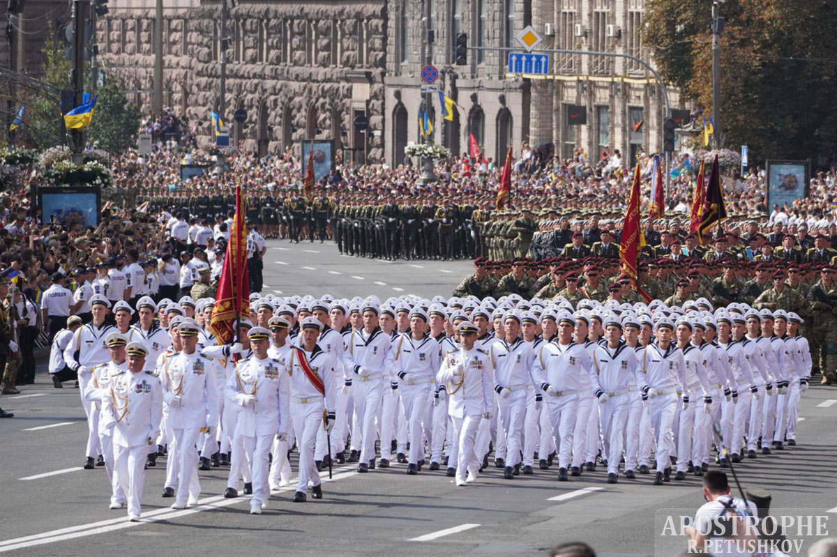 На станції метро "Золоті ворота" виходить натовп людей: багато в вишиванках. Усі прямують в сторону Хрещатика, щоб побачити військовий парад на честь 30-річчя Незалежності України. Вже прийшовши на Хрещатик, стає зрозуміло - перейти з одного боку вулиці на іншу практично нереально: людей дуже багато, а найсміливіші навіть піднялися на одну з військових машин для транспортування, з якої їх чомусь не зганяли. Інші підприємливі громадяни зайняли собі місця буквально на підступах до сцени, щоб краще побачити парад.