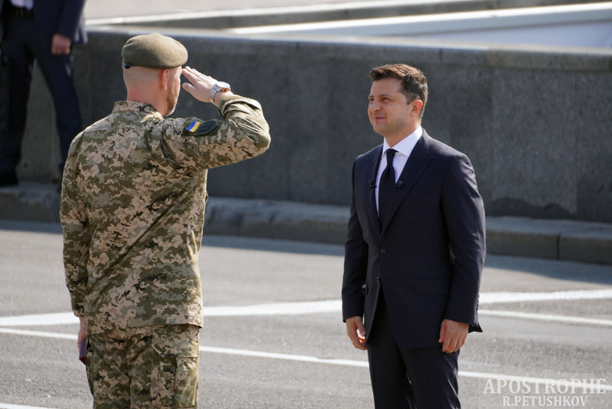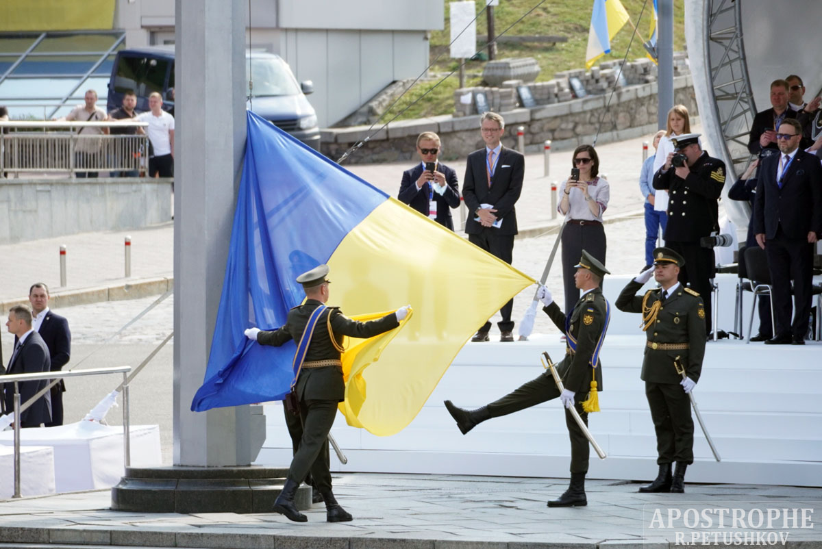О 10 годині ранку президент України Володимир Зеленський прибув на Майдан Незалежності. Він пройшов по середині дороги, яка розділяє дві сторони Майдану Незалежності. Церемонія почалася з того, що Президент Зеленський прийняв почесну варту, а під акомпанемент оркестру був піднятий прапор України.